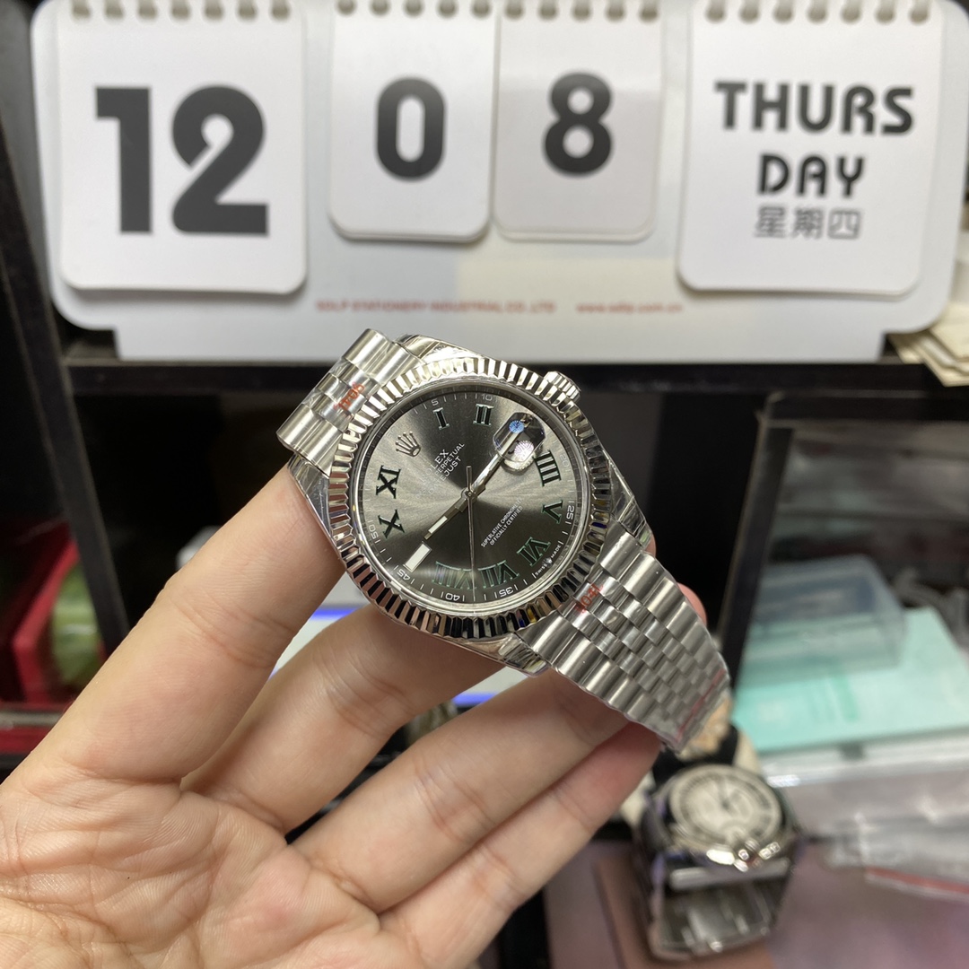 Home / ROLEX / Rolex Datejust Series m126334-0022, Grey Dial with Green Roman Numerals Five-Link Stainless Steel Bracele, 41mm Size.